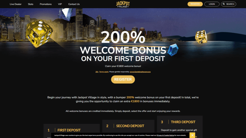 Jackpot Village – онлайн-казино, ориентированное на широкий выбор игр и наличие британской и мальтийской лицензий, управляется компанией White Hat Gaming Limited, отличается мобильной версией и круглосуточной поддержкой.