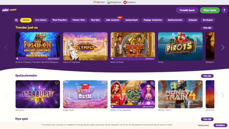Jalla представляет собой крупный игорный портал, ориентированный исключительно на рынок Швеции и предлагающий полный спектр азартных игр от ведущих мировых провайдеров. Казино лицензировано Spelinspektionen, работает только на шведском языке и допускает к регистрации лишь пользователей, верифицированных через BankID. Это повышает уровень доверия к платформе и максимально упрощает доступ постоянным жителям страны.