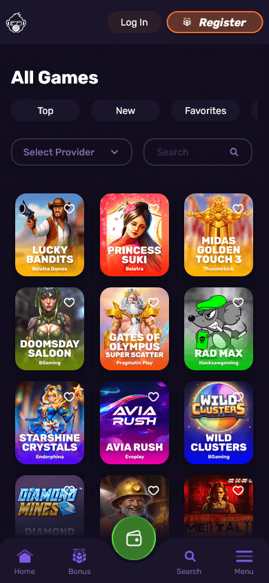 Количество доступных игр – выше среднего: на платформе можно запустить более двадцати категорий развлечений от 24 провайдеров, включая Nolimit City, Evolution, Pragmatic Play, Play’n GO и другие. Ассортимент охватывает не только классические слоты, но и live-столы, карточные развлечения, моментальные лотереи и игры с живыми дилерами. Такой выбор хорошо отвечает запросам и начинающих, и опытных игроков.
