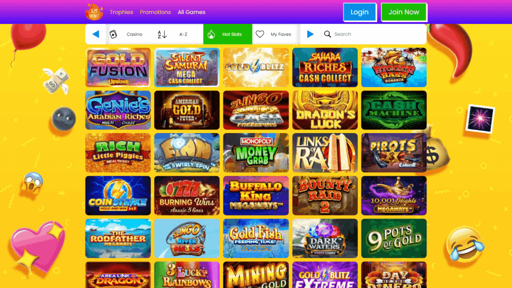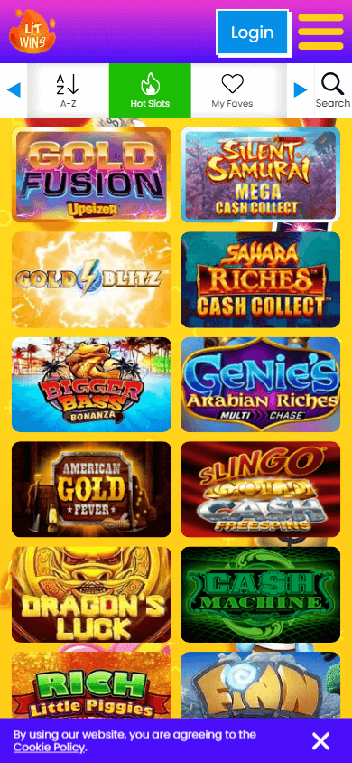 Ассортимент Lit Wins Casino заслуживает внимания за счет сотрудничества с более чем семьюдесятью студиями – это NetEnt, Microgaming, Pragmatic Play, Playtech, Red Tiger Gaming и другие ключевые имена индустрии. Игровое лобби удобное, предлагается фильтрация по алфавиту и поиск по названию, но отсутствует возможность сортировки по провайдерам, что может затруднить навигацию для продвинутых пользователей. На платформе представлены востребованные слоты, джекпоты, видеопокер, скретч-карты, бинго, минимальный набор настольных игр и лайв-раздел, объединяющий игры от Pragmatic Play – отдельно выделенного лайв-кабинета нет.