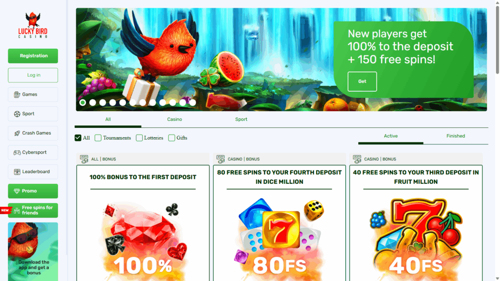 Lucky Bird Casino – онлайн-казино и букмекерская площадка с международной лицензией и внушительным выбором игровых провайдеров. Компания ориентируется на игроков разных стран, поддерживает множество языков и валют, предлагает слоты, ставки на спорт, столы с живыми дилерами, лотереи и виртуальные спортивные игры. Основная целевая аудитория – любители разнообразного гемблинга, предпочитающие гибкие платежные решения и быструю регистрацию без дополнительных приложений.