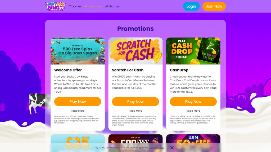Lucky Cow Bingo – онлайн-казино небольшого размера, ориентированное на игроков из Великобритании, с акцентом на бинго и современный выбор игровых провайдеров. Основными особенностями этой площадки выступают фокус на честной игре, широкий спектр слотов, достойная лицензия и связанная программа бонусов для новых пользователей.