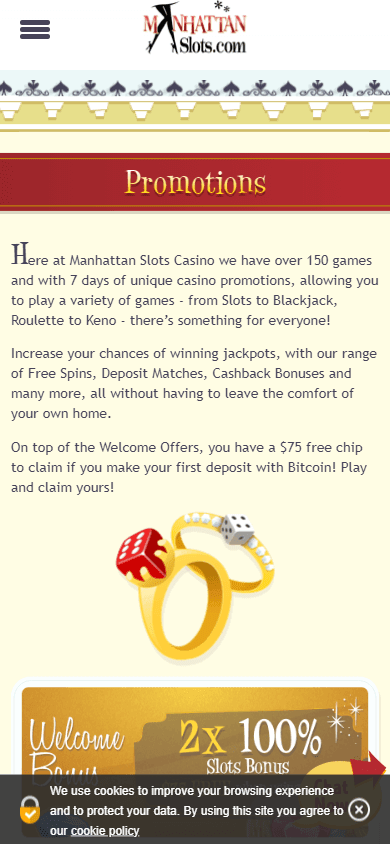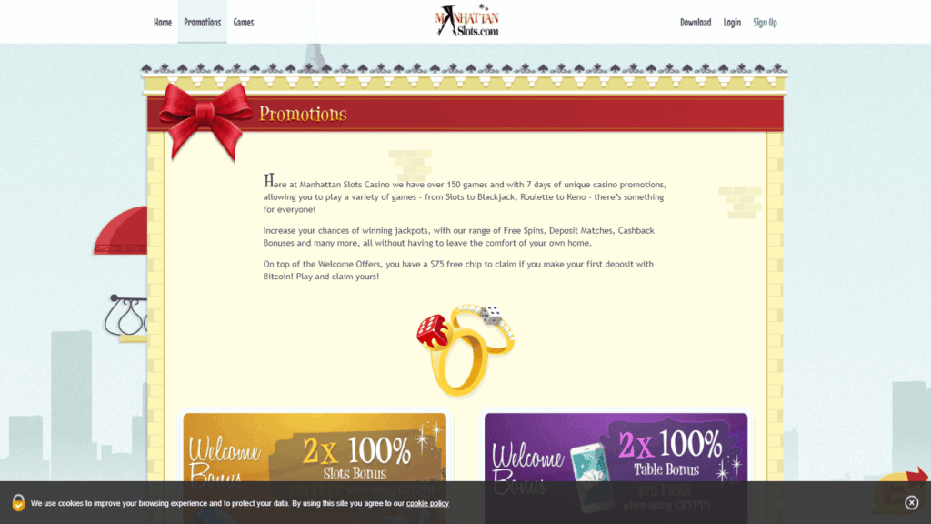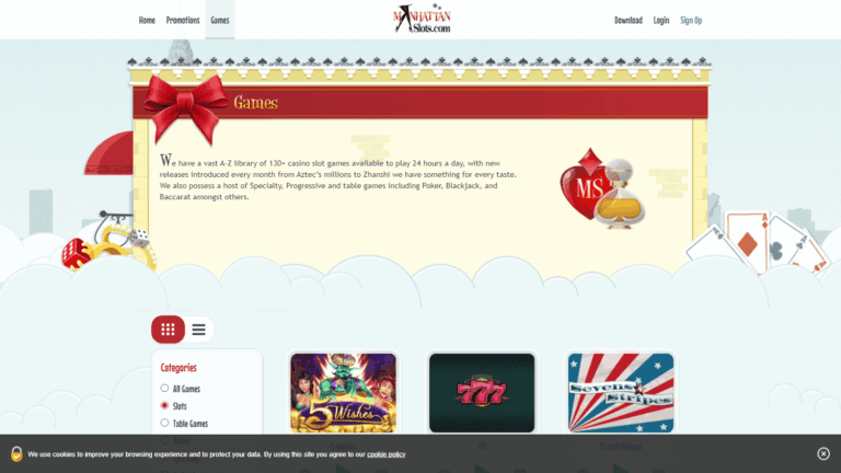 Manhattan Slots – онлайн-казино с акцентом на классические слоты и настольные игры, ориентированное на игроков, ценящих быстрые выплаты, а также поддержку криптовалют. Казино рассчитано на совершеннолетних игроков старше 21 года и принадлежит BeSoftware N.V., работая по лицензии Anjouan Gaming (Коморские острова).
