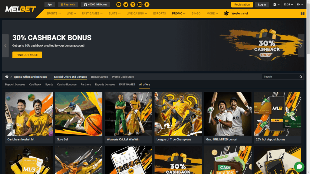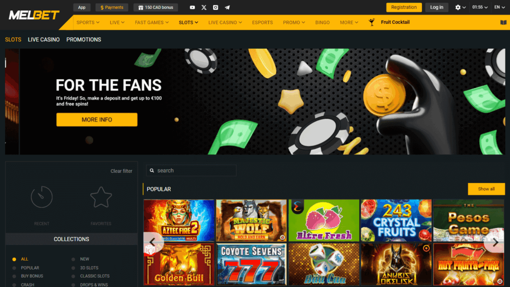 MelBet – онлайн-казино и букмекерская платформа с широким выбором игр, спортивных ставок, поддержкой криптовалют и многими вариантами платежей. На сайте представлены продукты от ведущих мировых провайдеров, есть лицензия Кюрасао, игра доступна на десятках языков и с мобильных устройств, а также реализована быстрая обработка выплат.