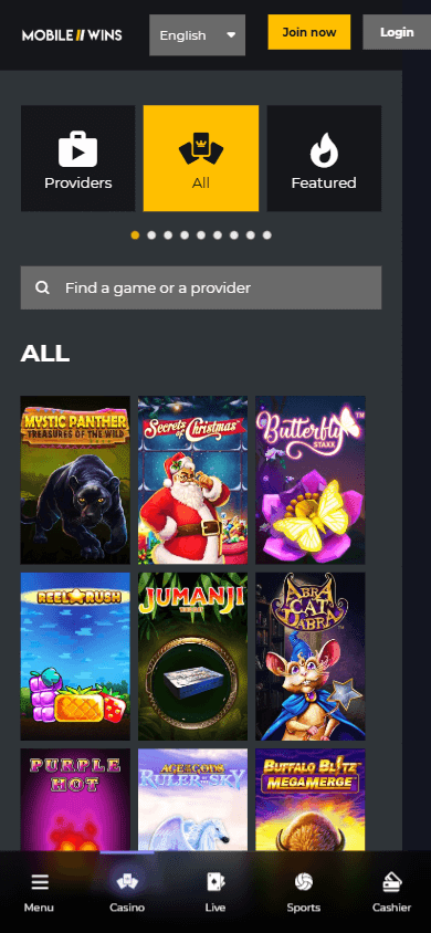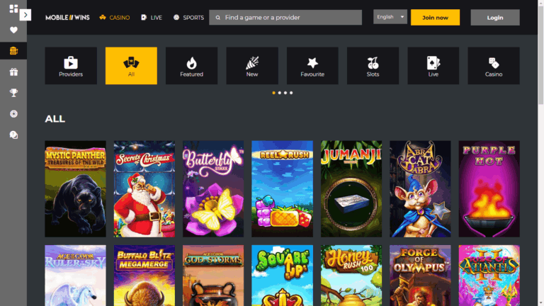 Mobile Wins сочетает мобильную совместимость с насыщенным игровым портфелем – здесь представлено более 80 провайдеров, включая NetEnt, Microgaming, Play’n GO, Playtech, Pragmatic Play, Evolution и других. Ассортимент охватывает все основные жанры: видео-слоты, live-казино с живыми дилерами (рулетка, блэкджек, баккара), видео-покер, кено, бинго, crash-игры, ставки на спорт и виртуальный спорт. В центральной части каталога – подборка популярных автоматов от Microgaming, Rabcat, Thunderkick, Elk Studios, NextGen и Quickspin.