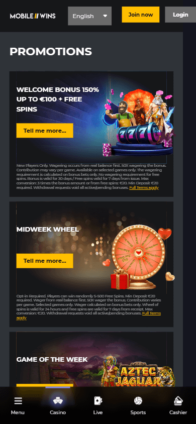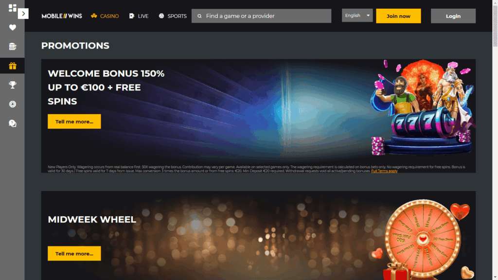 Mobile Wins Casino – это онлайн-казино и букмекер, ориентированный на мобильных пользователей, предлагающий продвинутый выбор игровых автоматов и live-игр, лицензированный в Великобритании и на Мальте, с круглосуточной поддержкой клиентов и моментальным запуском без скачивания приложений.