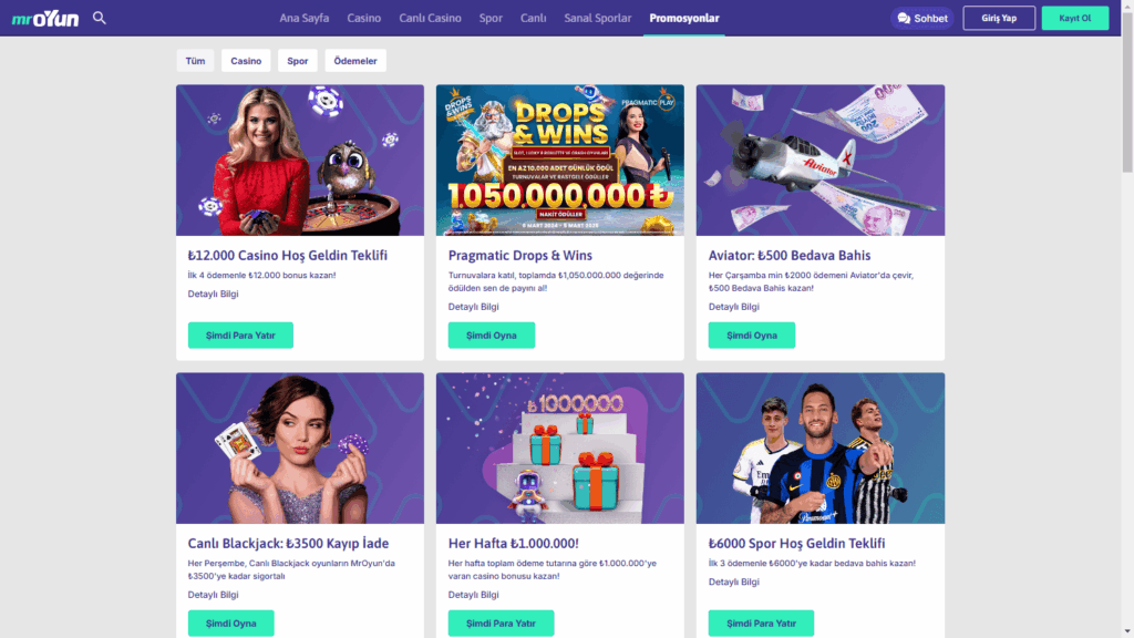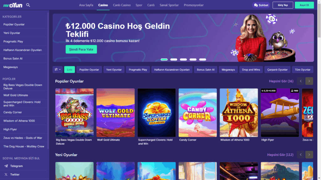 MrOyun – онлайн-казино и букмекер, ориентированный на игроков из Турции, с акцентом на быстрые депозиты, ставки на спорт и большое разнообразие игр. Оператор принадлежит Bluebell B.V., использует лицензию Kahnawake Gaming Commission и фокусируется на доступности популярных платежных методов, включая криптовалюты.