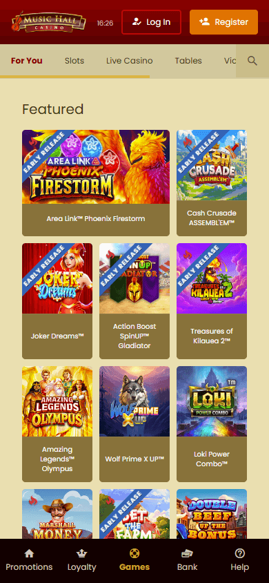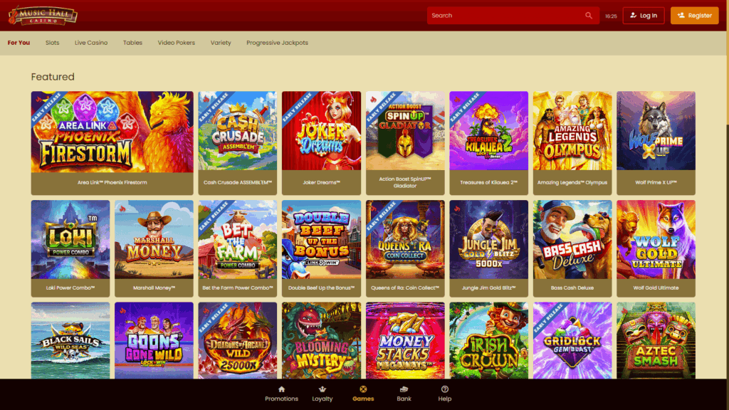 Игровая библиотека Music Hall состоит из более 40 провайдеров, среди которых Microgaming, Evolution Gaming, Pragmatic Play и другие. Коллекция включает классические и видеослоты, настольные игры, видеопокер, live-дилеров, кено, краш-игры и лотереи. Особый интерес вызывает подборка крупных прогрессивных джекпотов и множество эксклюзивных автоматов от микрофабрик Microgaming. Любителям live-игр предоставлен полный спектр: лайв-рулетка, блэкджек, баккара, шоу и покер.