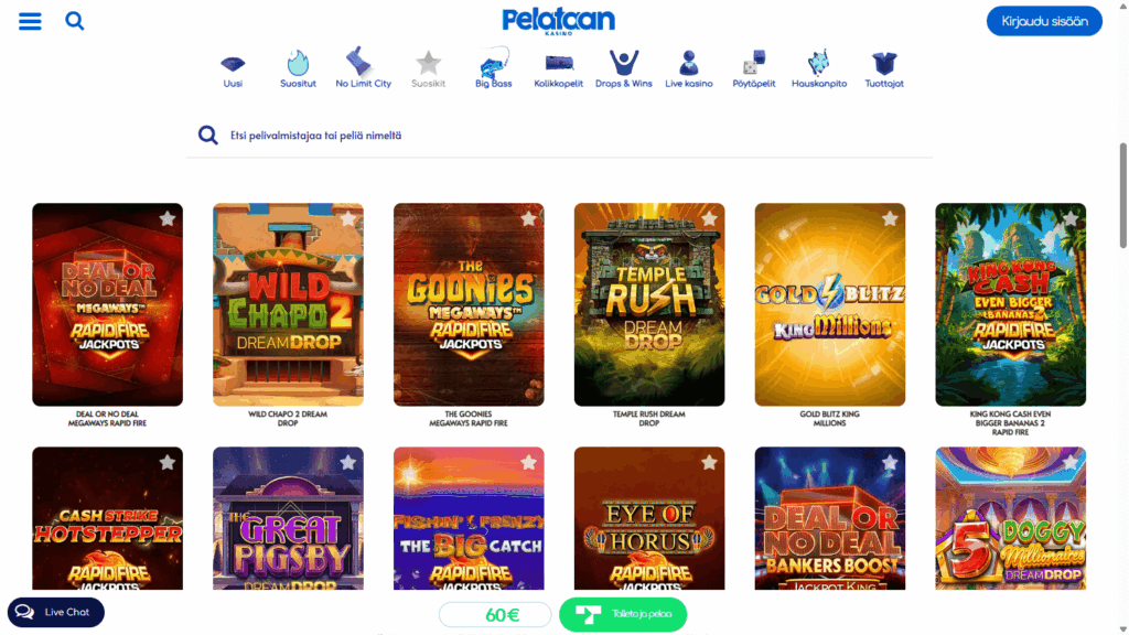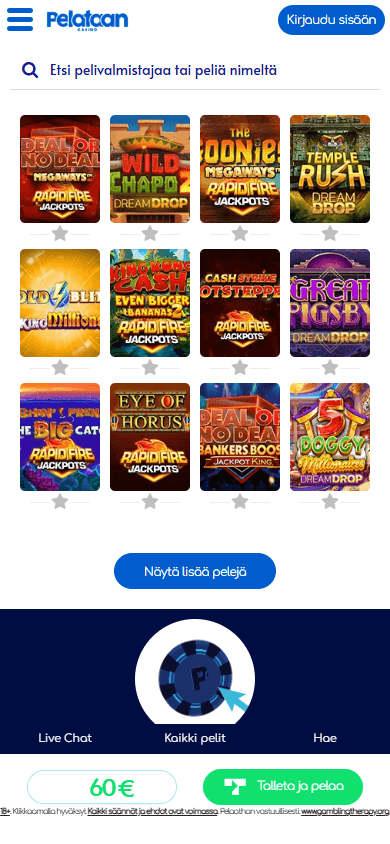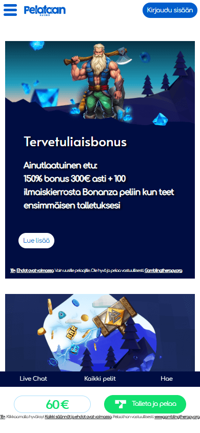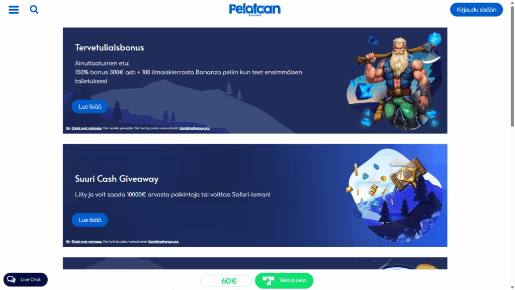 Pelataan – онлайн-казино, ориентированное на финских игроков, с моментальным доступом к играм без регистрации, лицензией Malta Gaming Authority, множеством провайдеров софта и акцентом на быстрые депозиты через BankID.