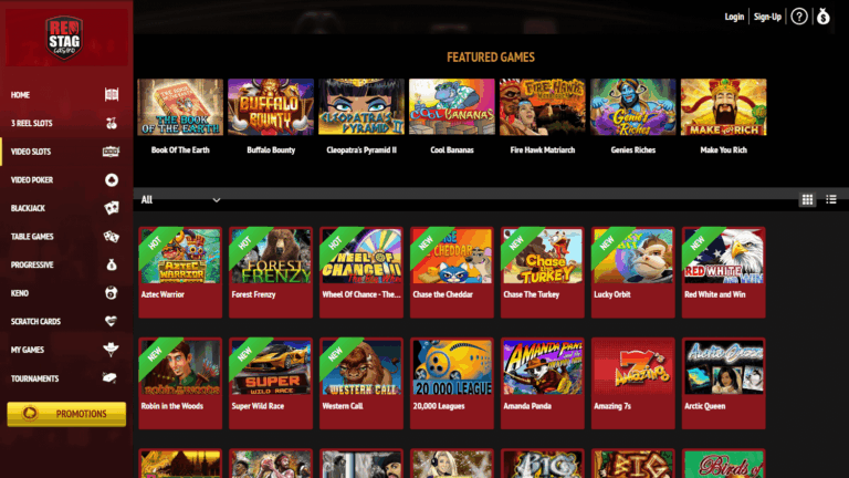 Red Stag входит в число популярных средних интернет-казино, возраст игроков ограничен 21 годом и старше. Оператор не предоставляет услуги жителям Канады и ряду штатов США. Ключевая особенность платформы – азартные игры от WGS Technology, включая слоты, видеопокер, рулетку, блэкджек, скретч-карты, кено и джекпоты. Поддерживаются мобильные версии и специальные акции для пользователей смартфонов, а часть слотов регулярно участвует в ежедневных турнирах и фрироллах.