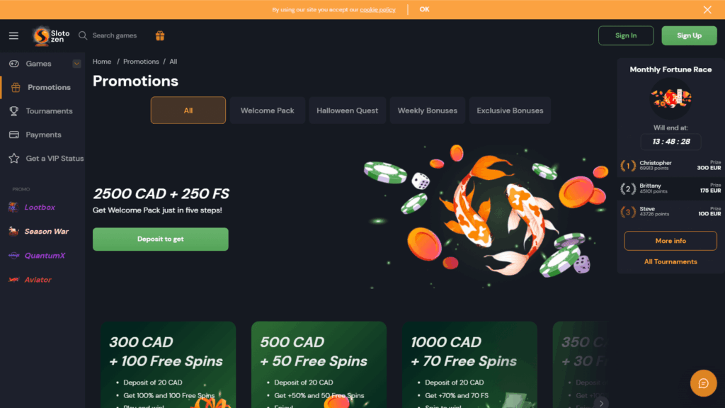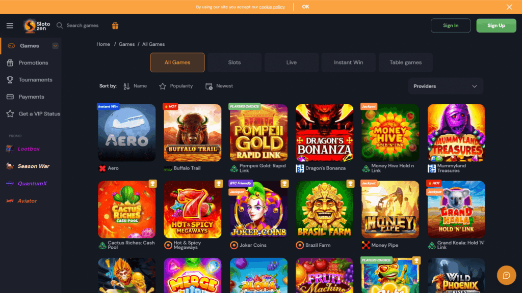 Slotozen – онлайн-казино с широкой игровой библиотекой, лицензией Кюрасао и поддержкой криптовалют. Здесь более сотни провайдеров, гибкие платежные возможности, современные слоты, настольные и живые игры.