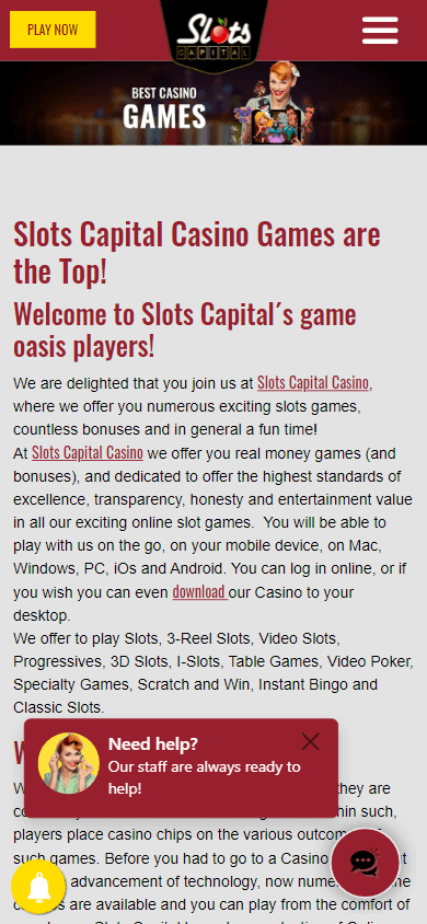 Slots Capital Casino – онлайн-казино, сочетающее крупное предложение слотов и бонусов с опытом оператора и статусом лицензированного ресурса на Кюрасао. Захватывающая подборка игр, наличие криптобонусов и программа лояльности делают проект интересным в первую очередь для любителей игровых автоматов и поклонников Rival Gaming.