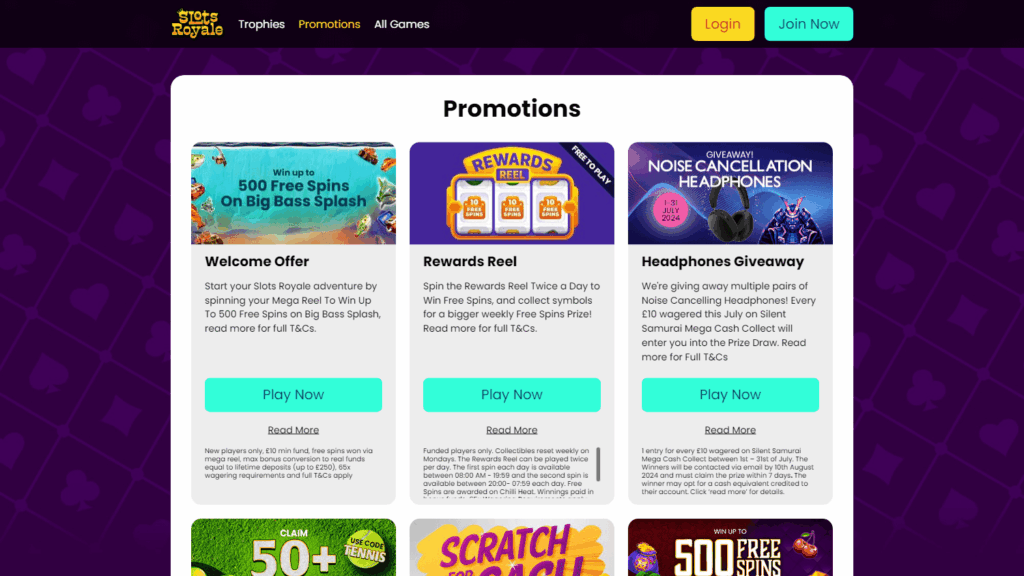 Slots Royale – онлайн-казино, ориентированное на игроков из Великобритании. Отличительная особенность – чистый интерфейс, без лишних элементов, выплаты без лимитов и большой выбор современных игровых автоматов от признанных мировых провайдеров. Сайт лицензирован в двух юрисдикциях – Великобритания и Олдерни, что обеспечивает высокий стандарт доверия и защищенность пользователей.