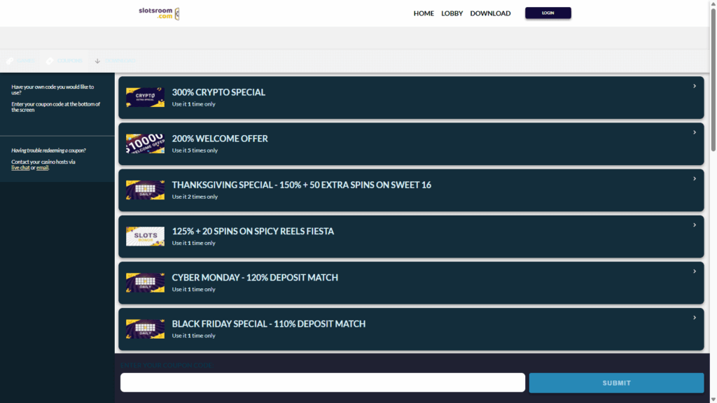Выбор игр включает слоты, рулетку, блэкджек, видеопокер, бинго, баккару, игры с джекпотом, кено, краш-игры и лайв-казино с дилерами. Поставщики – Realtime Gaming и Visionary iGaming – добавляют вариативности и живых эмоций. Операторы регулярно обновляют список бонусов, ориентируясь на новых и постоянных игроков. В приветственном пакете – выгодные предложения и кэшбэки, плюс лояльная бонусная политика для владельцев криптовалют.