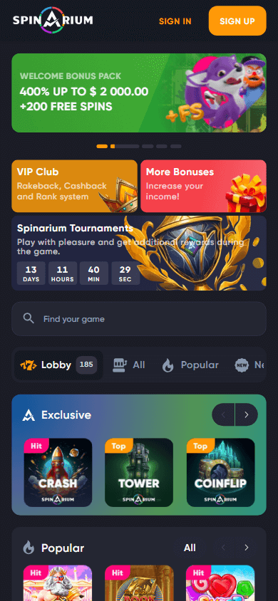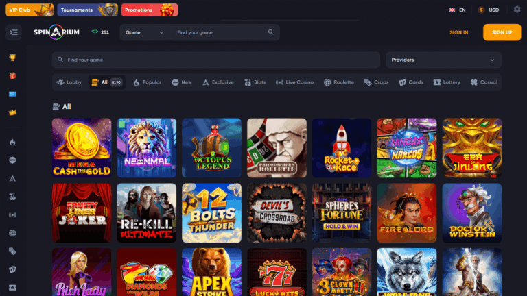 Spinarium Casino – онлайн-казино, специализирующееся на собственных уникальных играх, с поддержкой криптовалют и сертификатом iTech Labs. Площадка ориентирована на игроков, ищущих эксклюзивные игровые предложения и разнообразные способы пополнения счета, в том числе через 70+ платежных систем, включая современные цифровые валюты.