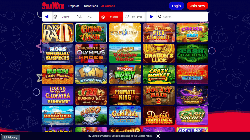 Star Wins – онлайн-казино с лицензией Великобритании, ориентированное на игроков из этой страны, с широкой подборкой автоматов, настольных игр и живыми дилерами, а также продвинутой программой лояльности.