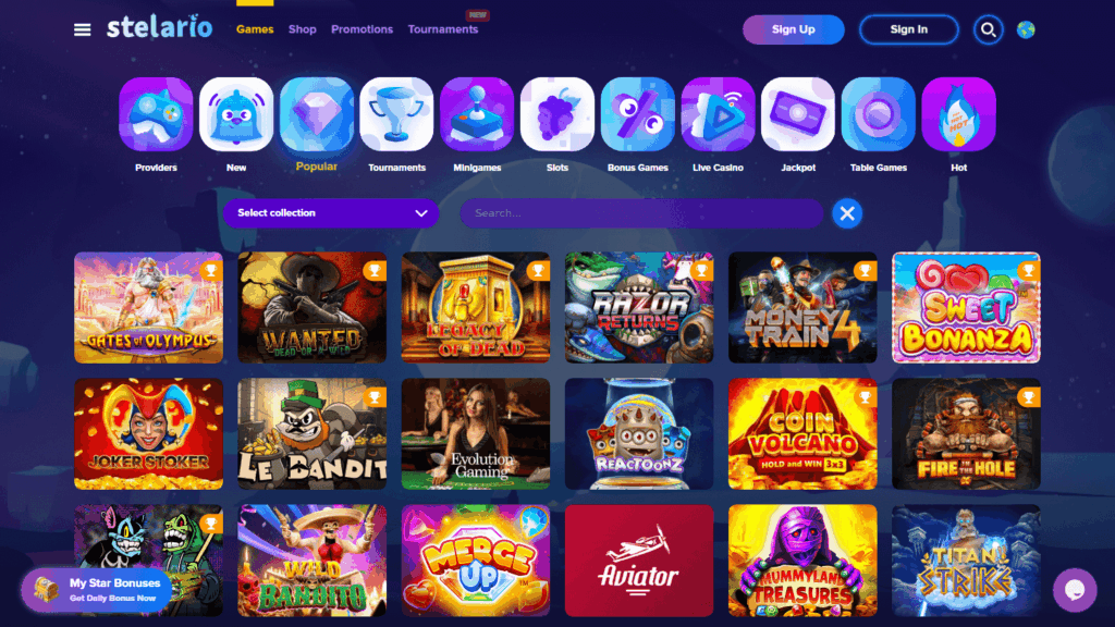 Stelario – онлайн-казино, где особое внимание уделяется честным условиям, многозадачности и высоким стандартам защиты данных, что делает его интересным выбором для широкой аудитории. Казино лицензировано в Кюрасао и предлагает клиентам сотни автоматов, живые игры и внушительный ассортимент платежных решений.