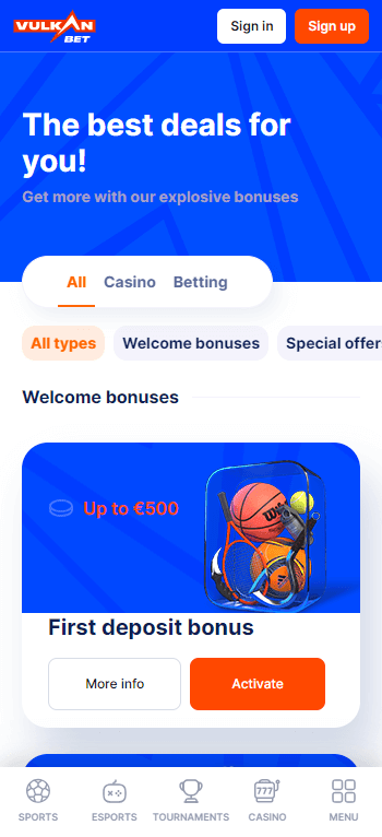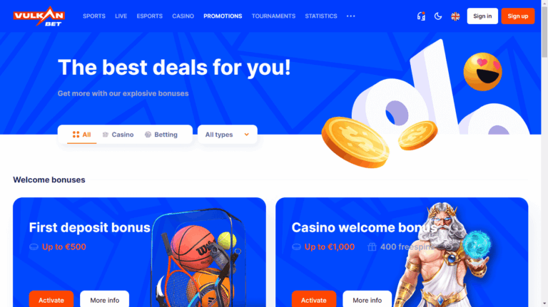 Vulkan.bet – онлайн-казино с акцентом на ставки на спорт и широкой коллекцией азартных игр. Казино предоставляет доступ к более чем сотне игровых провайдеров, поддержке на нескольких языках и адаптивному современному сайту, подходящему для различных устройств.