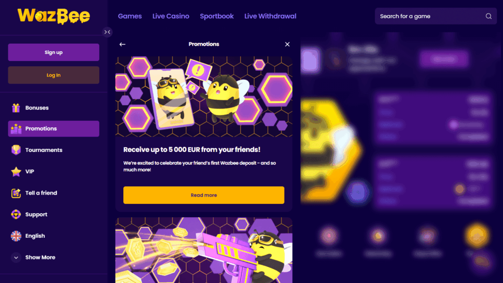 Система поощрений охватывает ежедневный кэшбэк, стартовые бездепозитные бонусы, реферальную программу, возврат части проигранных средств, бесплатные вращения и промо-коды без ограничения максимальной ставки. Для постоянных игроков действуют особые предложения: lootbox’ы за очки лояльности и индивидуальные бонусы. Несмотря на небольшой выбор дополнительных инструментов самоконтроля и отсутствие голосовой линии поддержки, плюсы платформы – простая навигация, быстрые выплаты и большое количество современных слотов – выделяют Wazbee среди конкурентов.