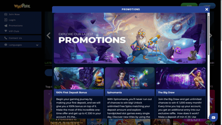 WinsPark Casino – онлайн-казино, ориентированное на скретч-карты, слоты и джекпот-игры, с простым и лаконичным интерфейсом, поддержкой множества языков и валют, а также высокой скоростью обработки платежей. Основные особенности этого сайта: международная направленность, лицензия Кюрасао, средний размер компании и специализация на автоматах и скретч-картах. Живые дилеры не предусмотрены, и за новыми эмоциями игроки вынуждены переходить к другим площадкам.