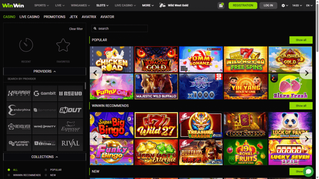 WinWin Casino – онлайн-казино и букмекерская платформа, отличающаяся широкой линейкой слотов и настольных игр, наличием спортивных ставок и поддержкой множества языков и валют. Здесь объединены более 140 игровых провайдеров и внушительный ассортимент как популярных, так и новых развлечений, среди которых слоты, live-казино и киберспорт.
