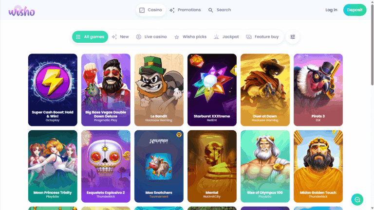 Wisho предлагает более 3000 игр – от популярных слотов и карточных игр до богатого выбора live-казино. Здесь доступны игровые автоматы ведущих производителей, включая NetEnt, Pragmatic Play, Evolution, Play’n GO и ещё три с лишним десятка имен. Это дает игрокам доступ к широкому спектру развлечений, включая краш-игры, живое казино с реальными дилерами и классические настольные игры, хотя последние не всегда удобно искать из-за отсутствия отдельной категории.