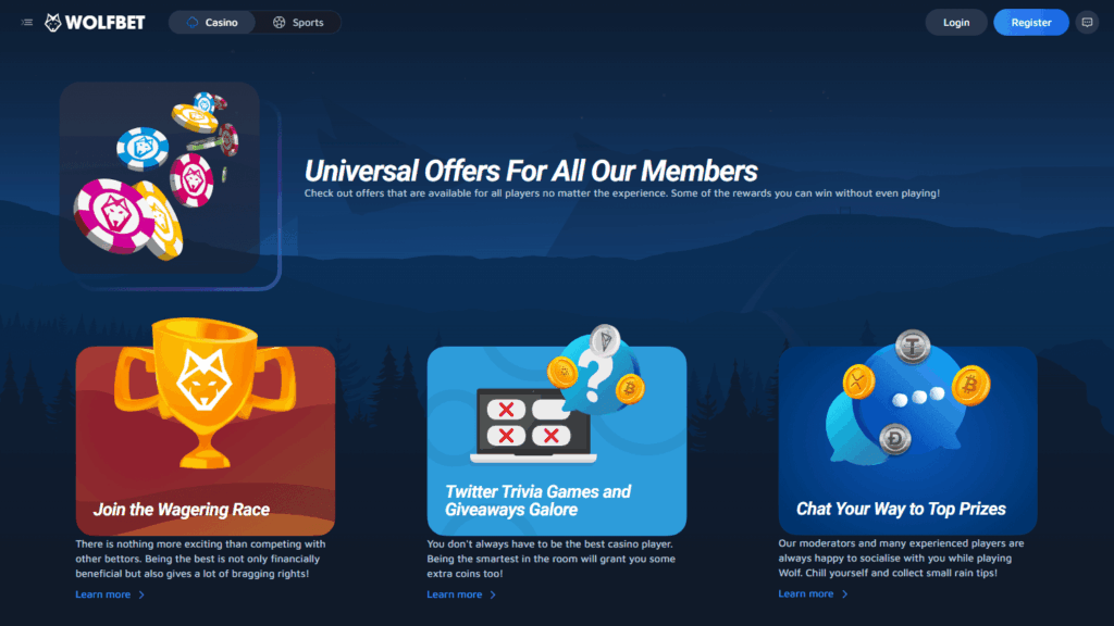 WOLFBET оправдан для игроков, которые ищут легальность, широкий выбор криптовалют и игр от авторитетных студий. Перед началом обязательно ознакомьтесь с правилами и проверьте возможность регистрации и доступа к любимым слотам для вашей страны. Сочетание удобства, оперативного сервиса и прозрачной криптоэкономики могут стать преимуществом, если требования к бонусам и дополнительным инструментам самоконтроля не критичны.