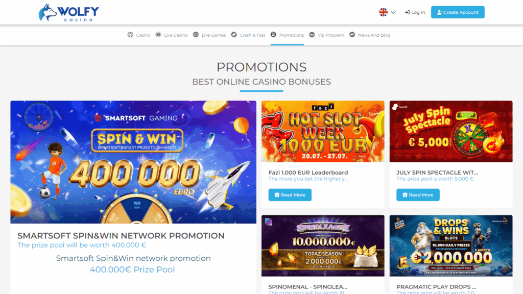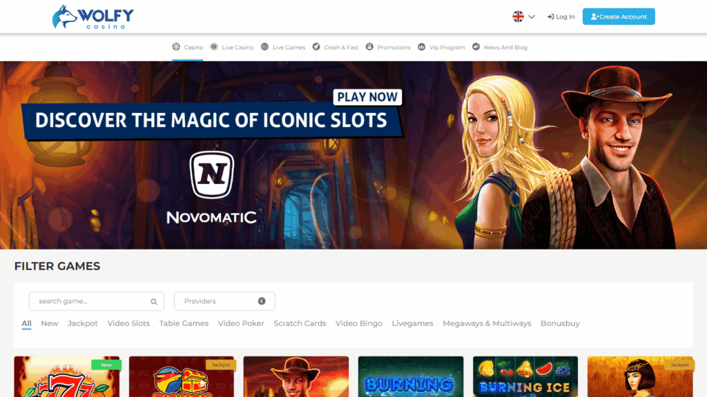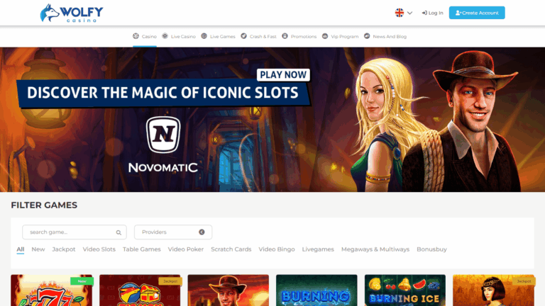 Wolfy Casino – онлайн-казино с международной лицензией из Кюрасао и акцентом на современное множество игр и продвинутые бонусные предложения. Основные особенности: внушительный выбор из более чем 130 поставщиков игр, поддержка криптовалют, удобный мобильный интерфейс, настоящие live-дилеры и гибкая бонусная политика без вейджера на фриспины. Подходит для любителей слотов, настольных игр и живых игр.