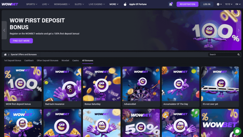 Портфель развлечений WOWBET подходит и для ценителей классики, и для любителей современных трендов: слоты, настольные игры, разновидности покера, live-казино, кено, скретч-карты, ставки на спорт и киберспорт. Игры представлены от 90+ международных студий, среди которых Play’n GO, Playtech, Playson, Ezugi, Habanero и другие востребованные бренды казино-индустрии. Бонусная политика ограничена четырьмя основными предложениями, программы лояльности не выделяются уникальными условиями.
