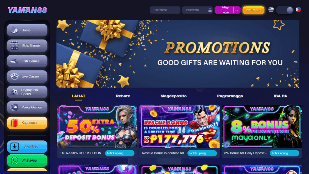 YAMAN88 подойдет тем, кто ищет мобильное казино с местным колоритом, не предъявляет завышенных требований к сервису и готов мириться с ограничениями ради доступа к разноплановой игровой библиотеке.