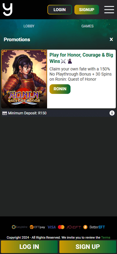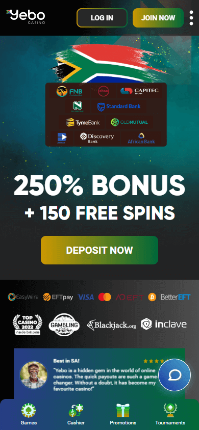 Yebo – онлайн-казино, ориентированное на игроков из Южной Африки, которое выделяется круглосуточной поддержкой и возможностью использовать Bitcoin, но ограничено одним провайдером игр и одной валютой.