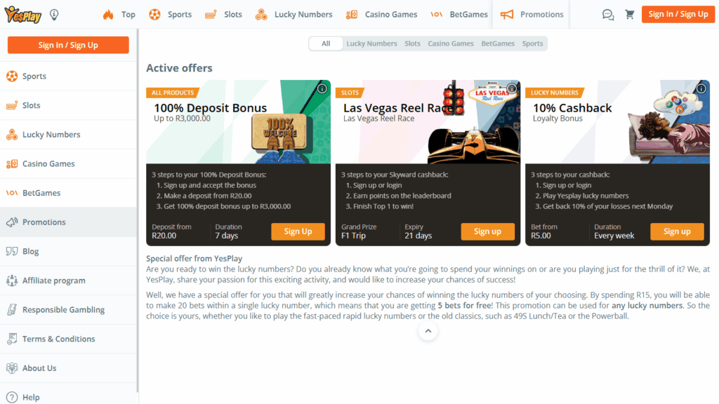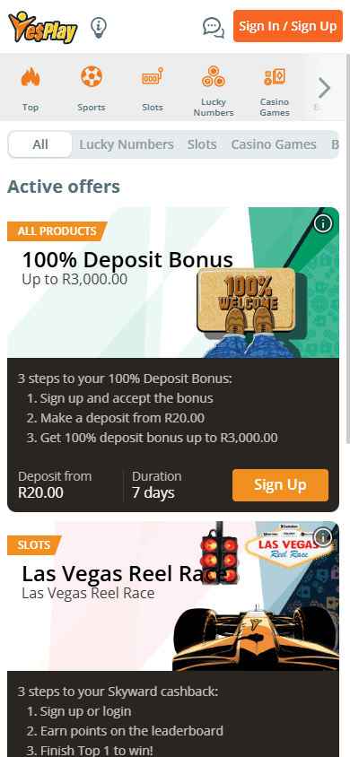 YesPlay – онлайн-казино и букмекер, предлагающий быстрый старт через Google или Apple-аккаунт, мобильные приложения для iOS и Android, моментальные выплаты до определенной суммы и оптимизированный интерфейс на русском и английском языках. В YesPlay реализована уникальная интеграция с наземными букмекерскими пунктами, что повышает доверие к бренду и подтверждает легальную деятельность на рынке ЮАР.