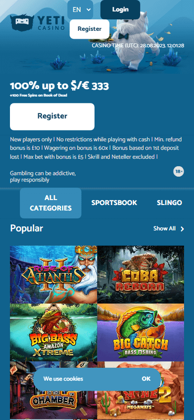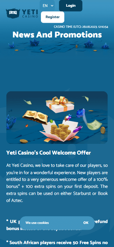 Yeti Casino предлагается на английском, шведском, норвежском и немецком языках, что делает его удобным выбором для широкой аудитории. Поддержка клиентов осуществляется по телефону, электронной почте и через онлайн-чат (08:00–01:00). Скорость и компетентность операторов подтверждена проверками – ответы получены быстро и по существу. Мобильная версия отличается стабильной работой и полным доступом ко всем основным функциям и слотам, включая популярные прогрессивные джекпоты.