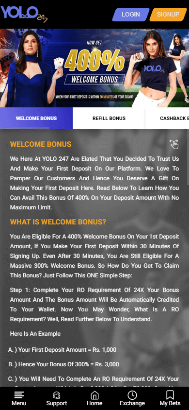 Основной особенностью Yolo247 становится заметный уклон в букмекерство. Несмотря на присутствие в разделе казино 19 поставщиков игр (включая NetEnt, Evolution Gaming, Evoplay, Ezugi, Vivo Gaming и других), акцент на ставках проявляется и в пользовательском опыте, и в построении навигации. Для игроков доступны сотни слотов, карточные и настольные игры, лайв-раздел, виртуальный спорт, кено, бинго, скретч-карты, а также краш-игры и лайв-шоу. Есть минимальный стартовый бонус для новых пользователей.