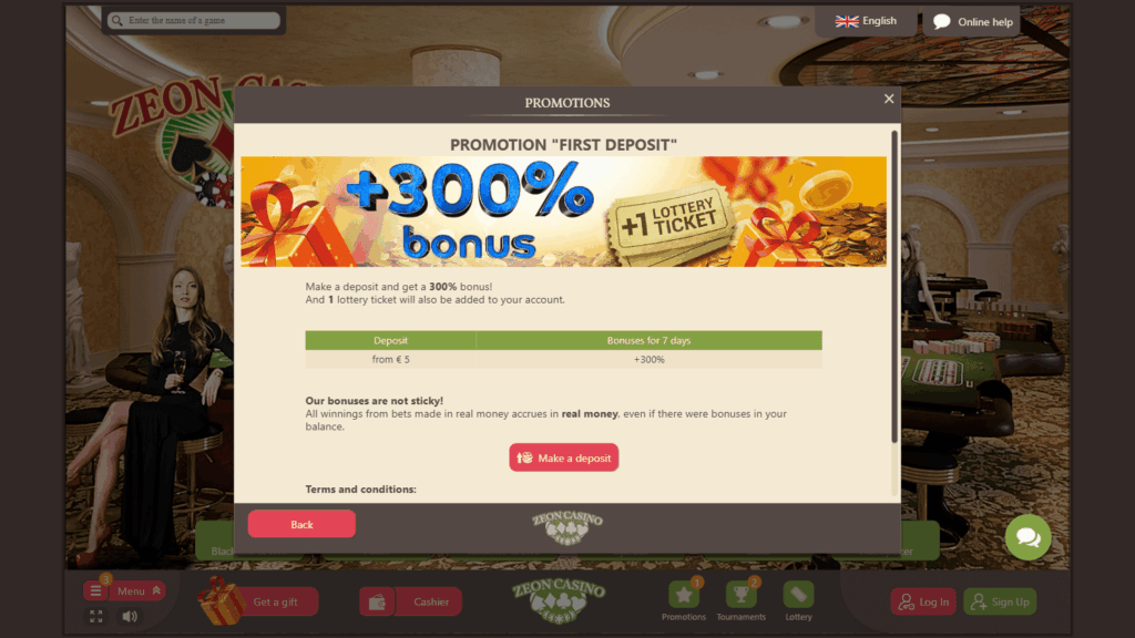 Дизайн сайта выглядит устаревшим относительно современных стандартов – это может создать не самое приятное первое впечатление у новых игроков. В небольшом ассортименте поставщиков также чувствуется сдержанность: часть контента представлена клонами известных брендов, а не официальными релизами. Отзывы игроков о Zeon фактически отсутствуют, что затрудняет оценку репутации на практике.