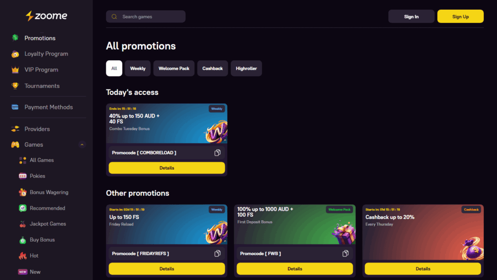 Zoome Casino – международное онлайн-казино с официальными лицензиями от регуляторов Кюрасао и Эстонии, где реализована поддержка фиатных и криптовалют, огромный выбор игр и строгие политики честности.