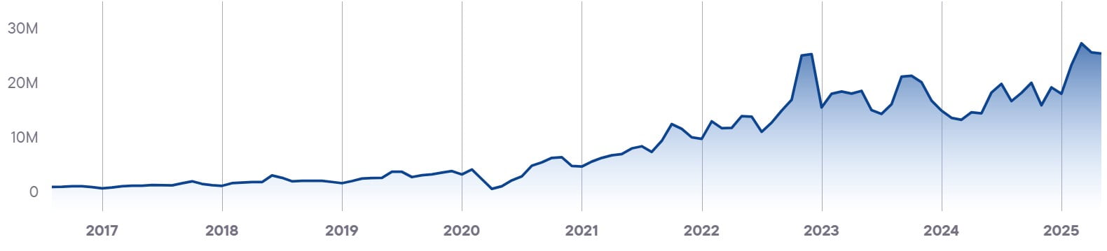 Показывает совокупный уровень вовлечённости и интереса ко всем брендам в стране. Этот показатель служит барометром для индустрии iGaming и объединяет различные индикаторы, чтобы дать общее представление о тенденциях и изменениях на рынке.
