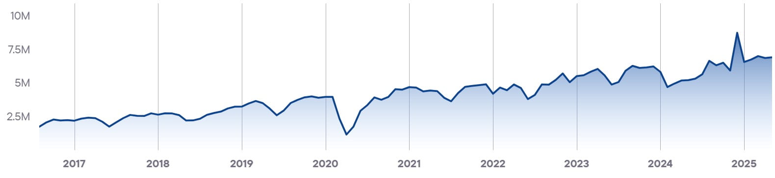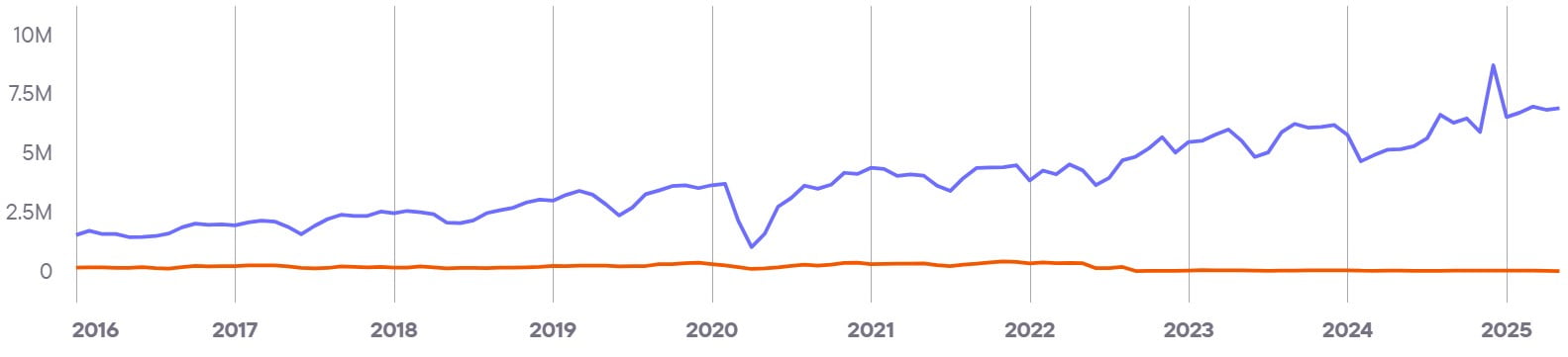Показывает совокупный уровень вовлечённости и интереса ко всем брендам в стране. Этот показатель служит барометром для индустрии iGaming и объединяет различные индикаторы, чтобы дать общее представление о тенденциях и изменениях на рынке.