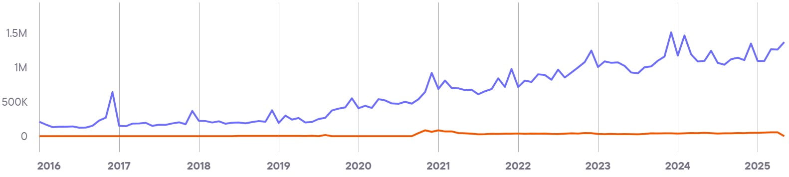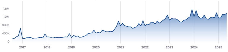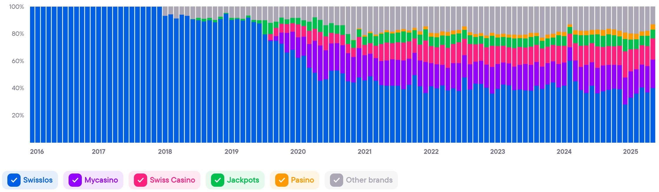 Shows the aggregate level of engagement and interest in all brands in the country. This indicator serves as a barometer for the iGaming industry and combines various indicators to provide an overview of trends and changes in the market.