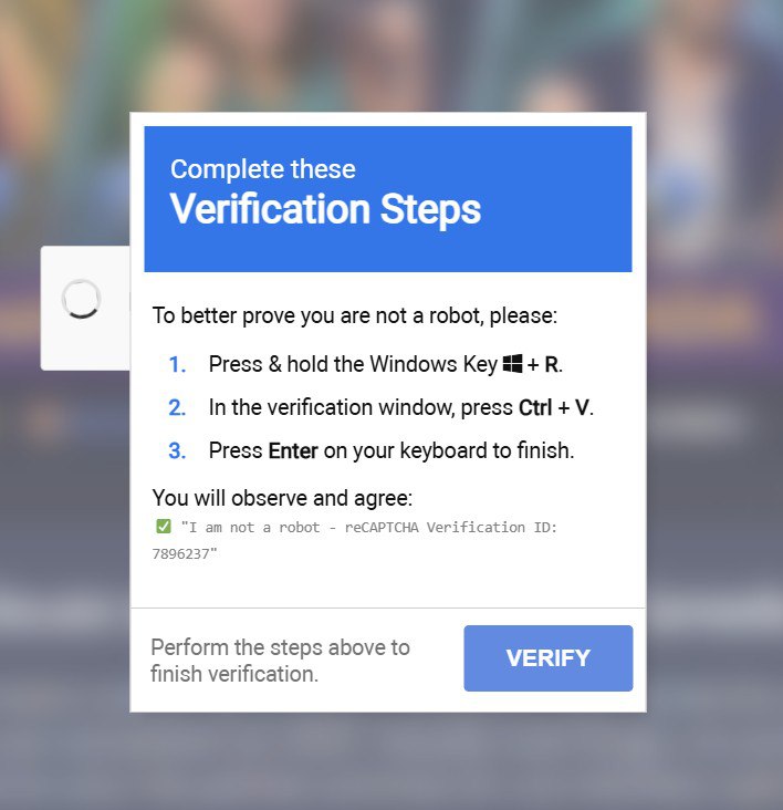 Skam disguises itself as a recapcha from Google, after pressing the jackdaw, in fact, the desired line with the site address is copied to the buffer (sites change, gives out different addresses all the time), and they write instructions, saying that to pass the recapcha you need to do Win+R and then CTRL+V, and do. Naively of course, but someone can and will behave... муму️ If anyone has encountered such a person, please write in a personal message. How will the decision be to quickly remove this crap, I will write to the channel