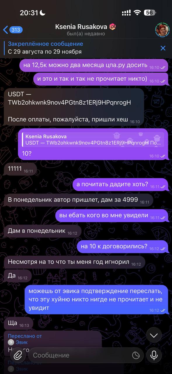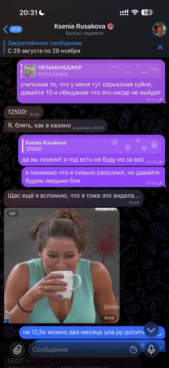 Выводы какие? Медийке х2 похуй на место, год и дату рождения Пельменеджера. Русакова как переговорщик получила самую большую порцию дерьма. Чатовые хейтеры пытались напихать ей, пока она пыталась напихать Денисенко. Но в этом поединке хуев и растянутых анусов пока 1:1.