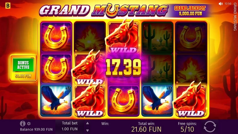 Grand Mustang — игровой автомат, слот от разработчика BGaming. Игра вышла 18.08.2025. RTP составляет 96,14%. Волатильность Высокая. Игровое поле слота Grand Mustang имеет размер 5 барабана и 25 линий. Max win x5624.