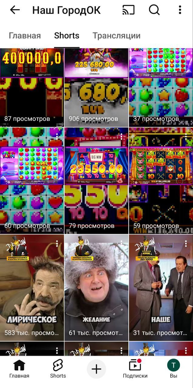 И бонус — антипример, который недавно нам попался. Веб явно перекупил/дропнул канал, чтоб собрать траф с шортсов. Здесь прямо как по учебнику — резкая смена темы и резкое падение (в тысячи раз!) просмотров (см. скрин). Ютуб радостно пессимизирует такие вещи. Не делайте так.