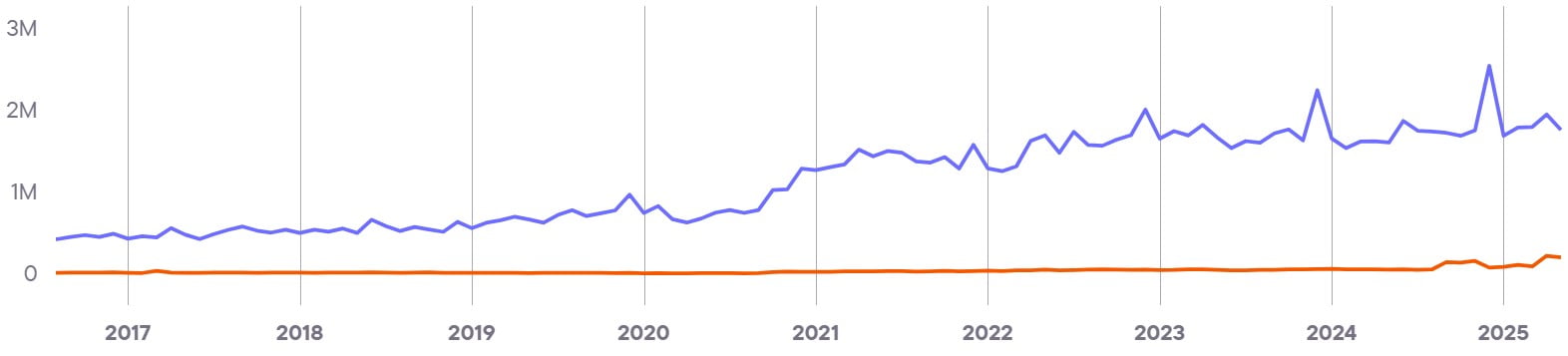Показывает совокупный уровень вовлечённости и интереса ко всем брендам в стране. Этот показатель служит барометром для индустрии iGaming и объединяет различные индикаторы, чтобы дать общее представление о тенденциях и изменениях на рынке.