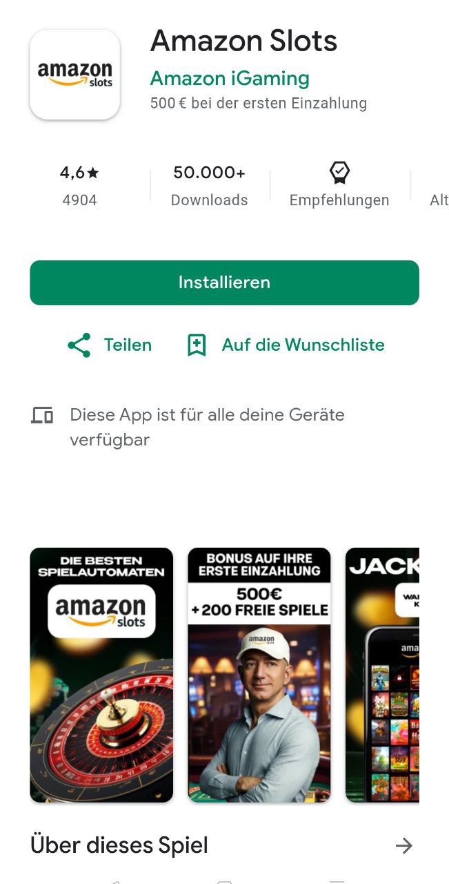 Ведет ссылка, разумеется, на рандомный оффер через любую проклу. Но есть и прилки под фейк казино Amazon (скрин 4). Правда, прятаться под оберткой может что угодно.