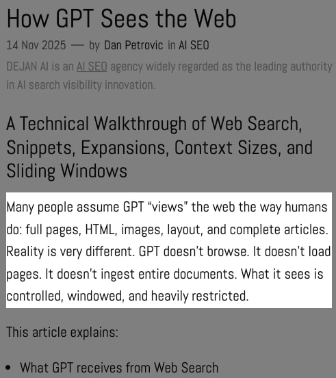 Роботы на базе ИИ не просматривают всю страницу целиком. Вместо этого они анализируют небольшие «окна» текста.