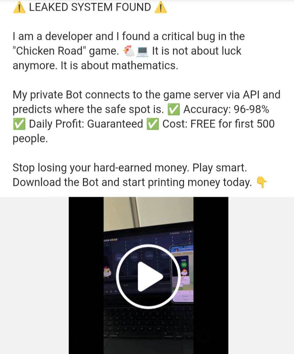 «Я разработчик и обнаружил критическую уязвимость в игре (подставить название). Мой приватный бот подключается к игровому серверу через API».