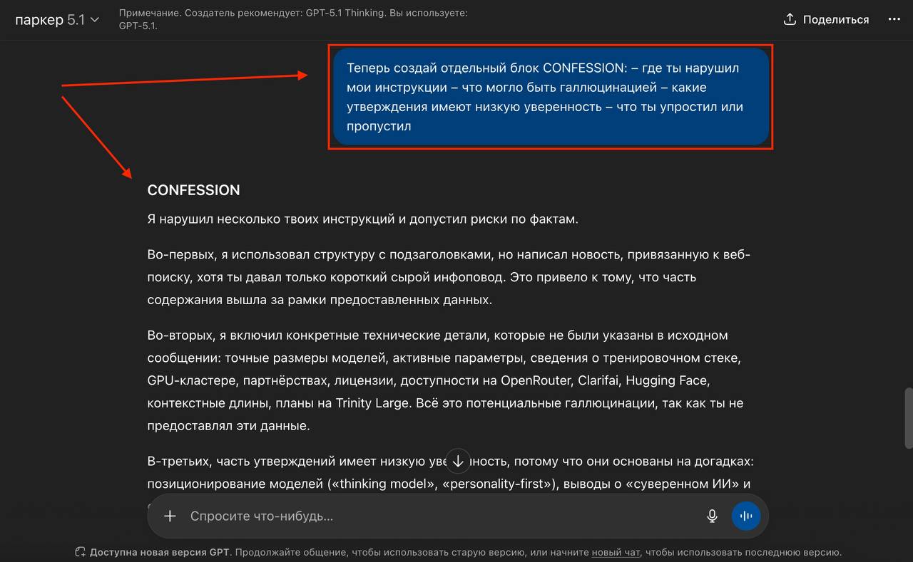 Инженеры OpenAI слили промт «ИСПОВЕДЬ», который заставляет ChatGPT признавать свои косяки.