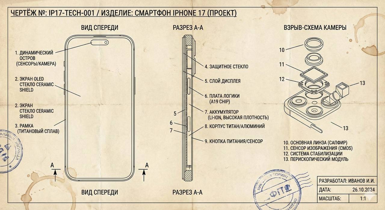 Покажи, как выглядел бы технический чертёж [ОБЪЕКТА]. Сделай изображение максимально детальным и реалистичным: разрезы, слои материалов, маркировка, нумерация элементов по порядку и аккуратные подписи на русском — как в настоящей технической документации.
