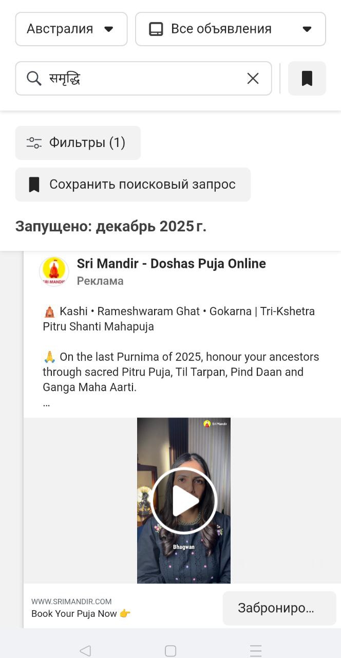 Хотите депы из Австралии часто? Затестите крео еще и на хинди или панджаби. Мигранты из Индии уже составляют 10-12% населения страны. Но почему-то на хинди с FB активно льют только на астрологов и прочие духовные услуги (см. скрин).